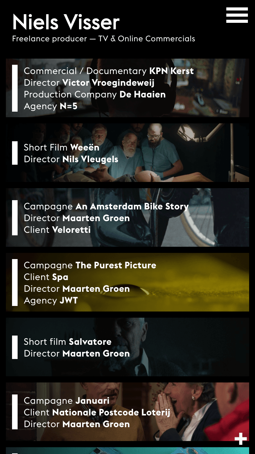Niels Visser is een freelance producent op het gebied van korte films en commercials. Tijdens het productieproces zorgt Niels voor de structuur en orde.