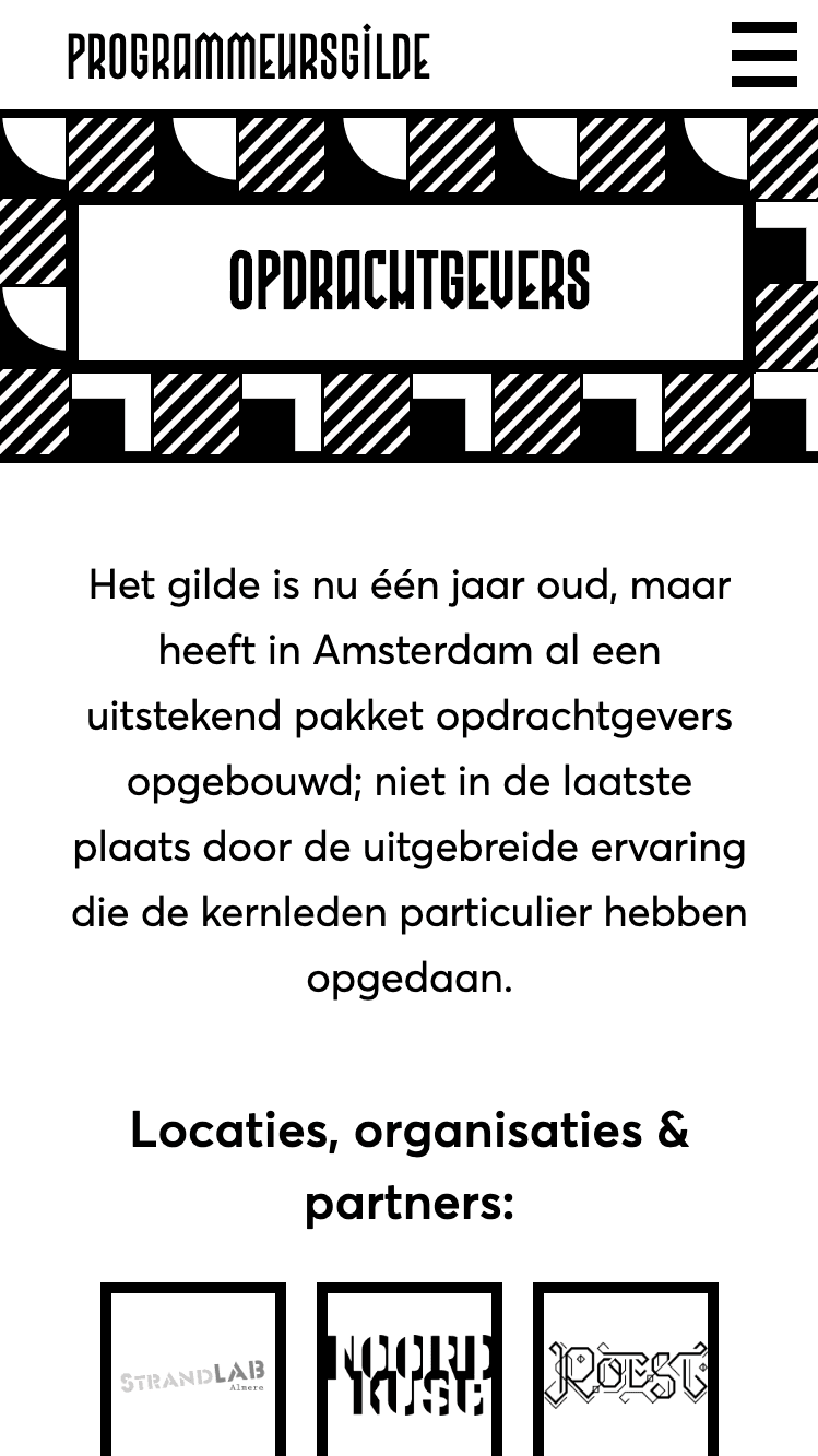 Screenshot van https://www.programmeursgilde.nl op mobiel-formaat.